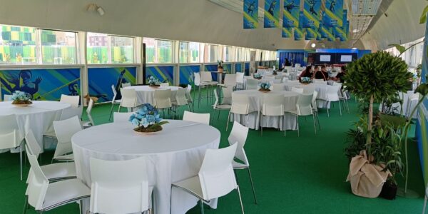 En este tipo de eventos el mobiliario es un elemento clave en la experiencia de los asistentes. A través del mobiliario se trasmite la imagen de la empresa y se crear un ambiente personalizado, agradable y funcional generando espacios innovadores y personalizados.
