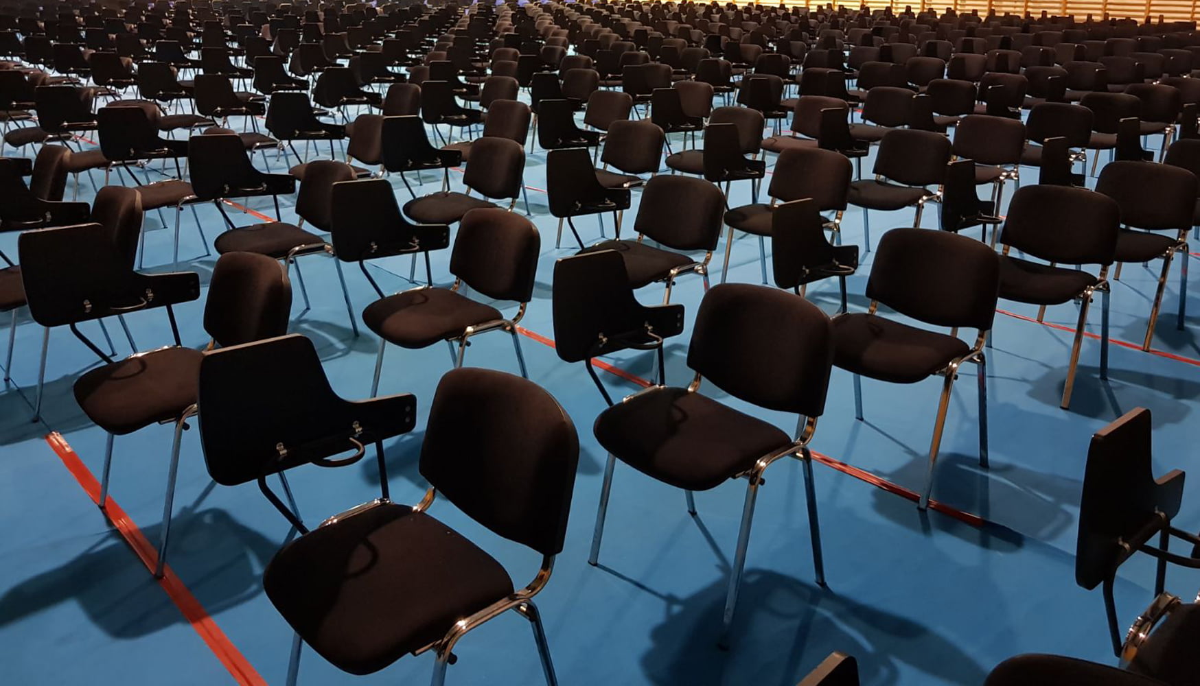 A la hora de elegir el mobiliario más adecuado para vestir un espacio, ya sea un pabellón, salón, sala, etc.  donde se va a desarrollar un examen es necesario decidir si se preferirá colocar sillas con pala o bien sillas con su mesa individual.