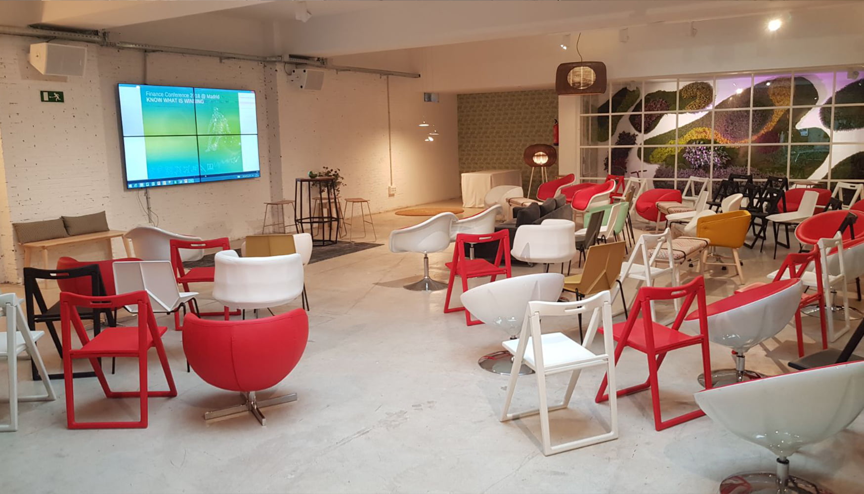 Es importante elegir el modelo de silla más adecuado para los asistentes y el mobiliario más apropiado para el escenario (como sillones, atriles, etc) con el fin de reflejar la imagen de la empresa y contribuir a conseguir los objetivos de comunicación del evento.